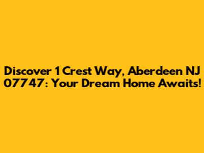Hey guys, are you on the hunt for a new place to call home in the beautiful state of New Jersey? Well, get ready to be seriously excited because we're diving deep into a property that might just be your perfect match: 1 Crest Way, Aberdeen NJ 07747. This isn't just another listing; it's an invitation to a lifestyle. Situated in the heart of Aberdeen Township, this address offers a fantastic blend of suburban tranquility and convenient access to everything you need. Whether you're a growing family, a young professional, or looking to downsize, this property in the 07747 zip code has something special to offer. Aberdeen itself is known for its friendly community, excellent schools, and a prime location that makes commuting a breeze. So, buckle up as we explore what makes 1 Crest Way a standout option in today's real estate market. We'll be covering everything from the property's unique features to the surrounding neighborhood's benefits, giving you the full scoop to help you make an informed decision. Let's get started on this exciting journey to find your next dream home!