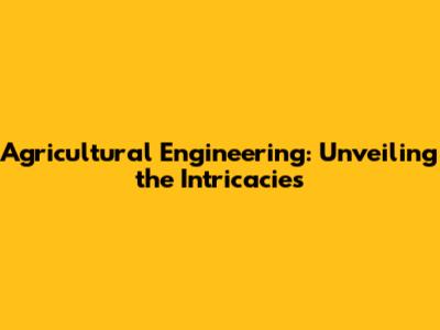 Agricultural Engineering: What Does It Really Entail?