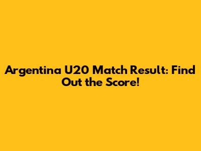 Argentina U20 Match Result: Find Out The Score!
