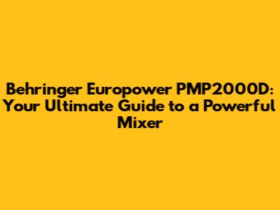 Behringer PMP2000D: Your Ultimate Guide