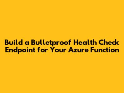 Build A Bulletproof Health Check Endpoint For Your Azure Function