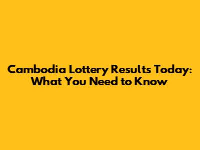 Cambodia Lottery Results Today: What You Need To Know