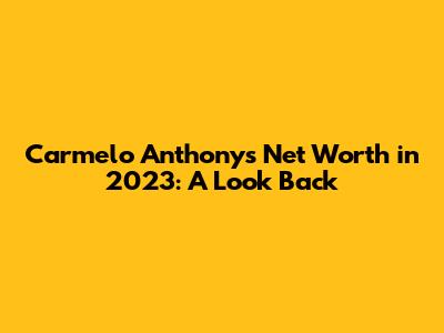 Carmelo Anthony's Net Worth In 2023: A Look Back