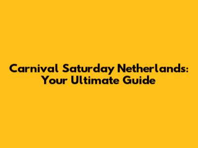 Carnival Saturday Netherlands: Your Ultimate Guide