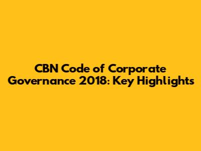 CBN Code Of Corporate Governance 2018: Key Highlights