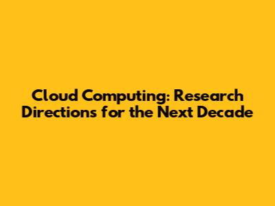 Cloud Computing: Research Directions For The Next Decade