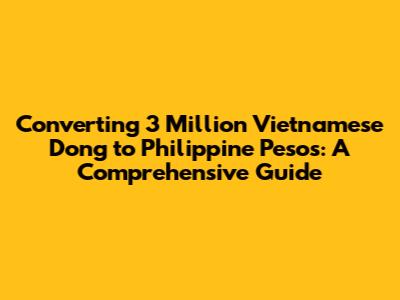 Hey there, fellow money enthusiasts! Ever wondered how much 3 million Vietnamese Dong (VND) is worth in Philippine Pesos (PHP)? You're in the right place! This guide breaks down everything you need to know about converting VND to PHP, including current exchange rates, factors influencing the conversion, and practical tips for getting the best deal. So, buckle up, grab your calculators (or your favorite currency converter app), and let's dive in!