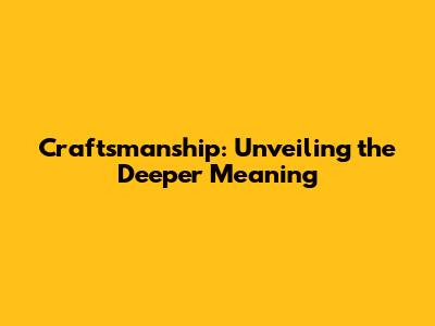 Craftsmanship: Unveiling The Deeper Meaning