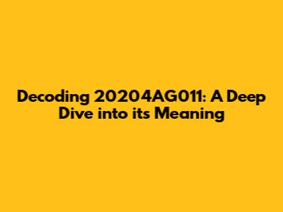 Decoding 20204AG011: A Deep Dive Into Its Meaning