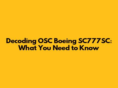 Decoding OSC Boeing SC777SC: What You Need To Know