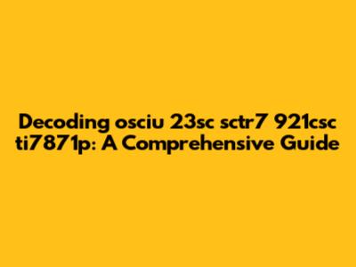 Decoding Osciu 23sc Sctr7 921csc Ti7871p: A Comprehensive Guide