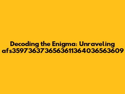 Decoding The Enigma: Unraveling Afs3597363736563611364036563609