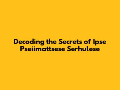 Decoding The Secrets Of Ipse Pseiimattsese Serhulese