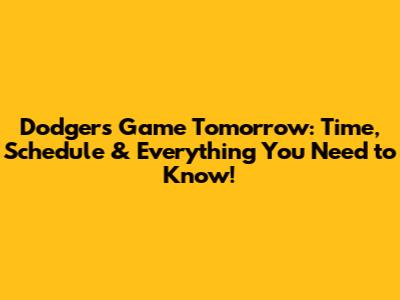 Dodgers Game Tomorrow: Time, Schedule & More!