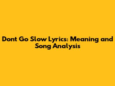 Don't Go Slow Lyrics: Meaning And Song Analysis