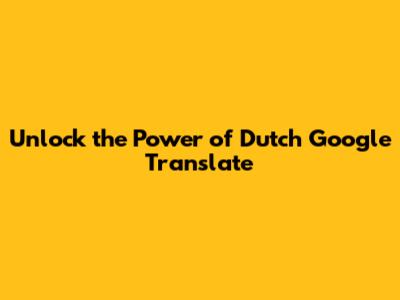 Unlock the Power of Dutch Google Translate