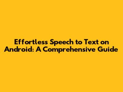 Effortless Speech To Text On Android: A Comprehensive Guide