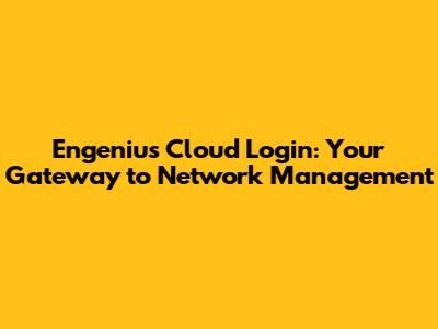 Engenius Cloud Login: Your Gateway To Network Management