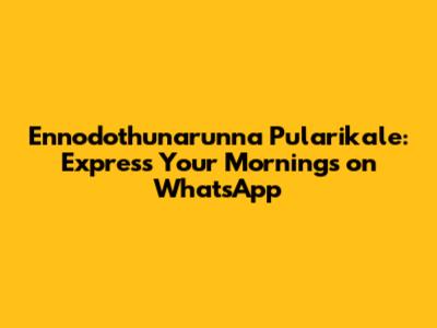 Ennodothunarunna Pularikale: Express Your Mornings On WhatsApp