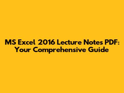 Ready to get your hands on these comprehensive Excel 2016 lecture notes? Simply click the download link below to access your free PDF guide. Start mastering Excel 2016 today and take your spreadsheet skills to the next level! Good luck, and happy excelling!