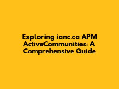 Exploring Ianc.ca APM ActiveCommunities: A Comprehensive Guide