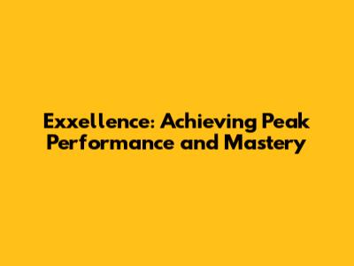 Exxellence: Achieving Peak Performance And Mastery