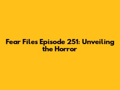 Hey guys! Get ready to dive deep into the chilling world of Fear Files with a detailed look at Episode 251. This episode is a rollercoaster of suspense, horror, and the supernatural, keeping you on the edge of your seat from start to finish. Let's break down what makes this episode a standout in the Fear Files series, exploring its plot, characters, and the terrifying elements that bring the horror to life.