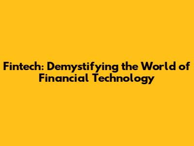 Fintech: Demystifying The World Of Financial Technology
