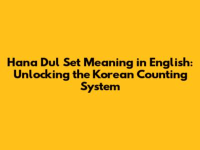 Understanding the Basics: What Does Hana Dul Set Mean?