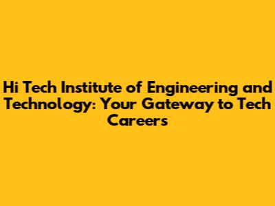 Hi Tech Institute: Engineering And Tech Explained