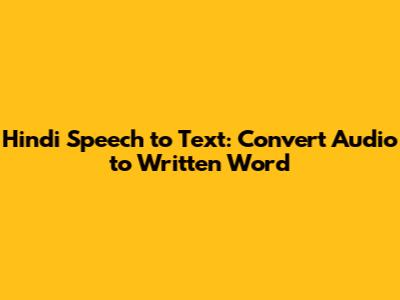 Hindi Speech To Text: Convert Audio To Written Word