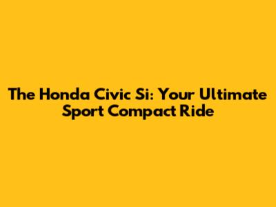 Honda Civic Si: The Ultimate Sport Compact