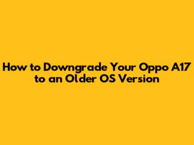 Why Downgrade Your Oppo A17?