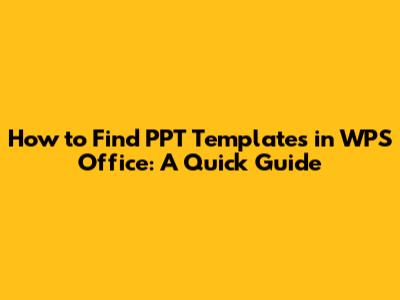 How To Find PPT Templates In WPS Office: A Quick Guide