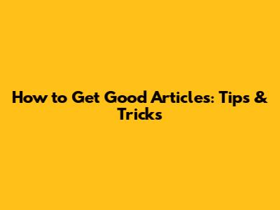 How To Get Good Articles: Tips & Tricks