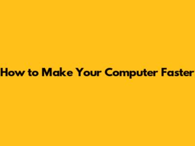 How To Make Your Computer Faster