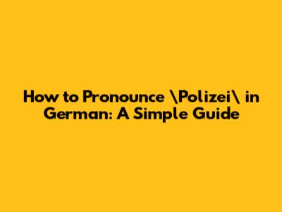 How To Pronounce Polizei In German: A Simple Guide