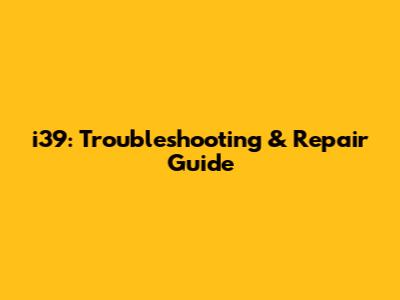 I39: Troubleshooting & Repair Guide
