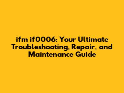 Ifm If0006: Troubleshooting, Repair, & Maintenance Guide