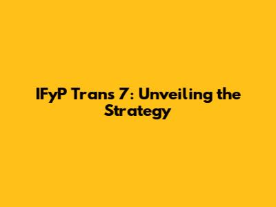 IFyP Trans 7: Unveiling The Strategy
