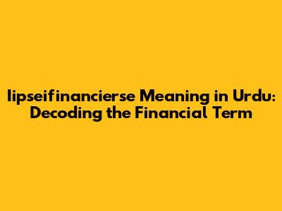 Iipseifinancierse Meaning In Urdu: A Comprehensive Guide