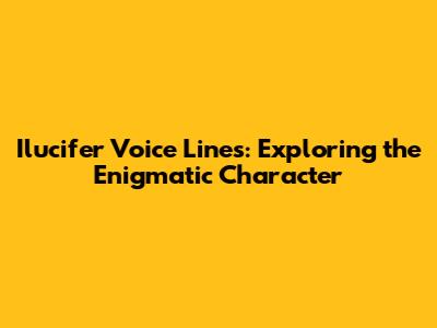 Ilucifer Voice Lines: Exploring The Enigmatic Character