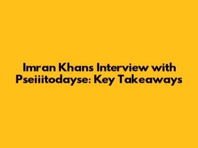 Imran Khan's Interview With Pseiiitodayse: Key Takeaways