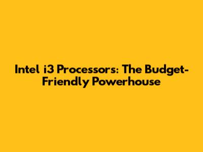 Intel I3 Processors: The Budget-Friendly Powerhouse