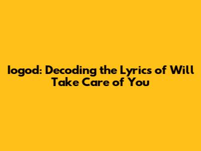 Hey guys! Ever found yourself humming a tune and wondering, "What's the real story behind these lyrics?" Well, today we’re diving deep into the world of Iogod, specifically their track "Will Take Care of You." We're going to break down the meaning, explore the context, and maybe even uncover some hidden gems within the song. So, buckle up and let's get started!