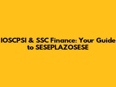 IOSCPSI & SSC Finance: Your Guide To SESEPLAZOSESE