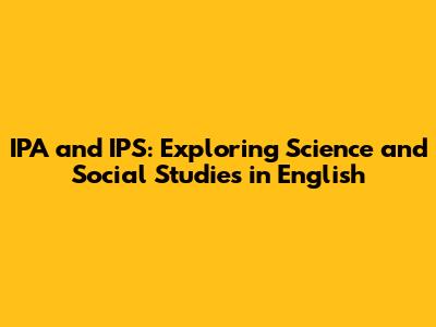 IPA And IPS: Exploring Science And Social Studies In English