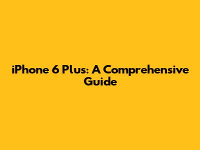 IPhone 6 Plus: A Comprehensive Guide