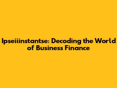 Ipseiiinstantse: Your Ultimate Guide To Business Finance