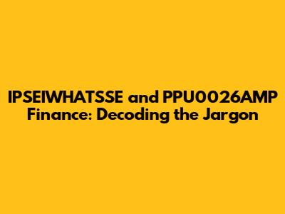 Hey guys! Ever stumble upon terms like IPSEIWHATSSE and PPU0026AMP Finance and feel like you've landed in a different dimension? Don't worry, you're not alone. The world of finance, especially when it comes to specific project codes and acronyms, can be a real head-scratcher. This article is all about breaking down what these terms actually mean, making them way less intimidating. We'll dive deep into IPSEIWHATSSE, explore its functions, and then switch gears to demystify PPU0026AMP Finance. Get ready to have these concepts clarified, one step at a time, making sure you understand the basics before we delve into more complex ideas. Let's get started, shall we?